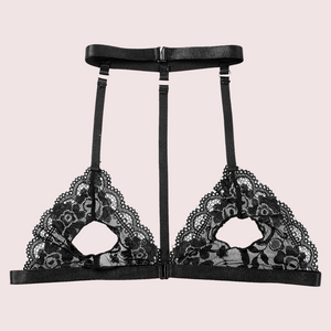 Ignite your allure with the Midnight Temptation Sheer Lace Bralette β¨π Crafted from delicate sheer lace πΉ this open bralette highlights your curves π and adds a bold seductive touch π